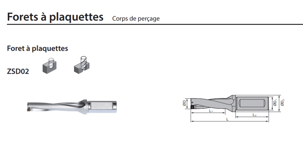 Foret à plaquettes ZSD02 2xØ ZCC-CT