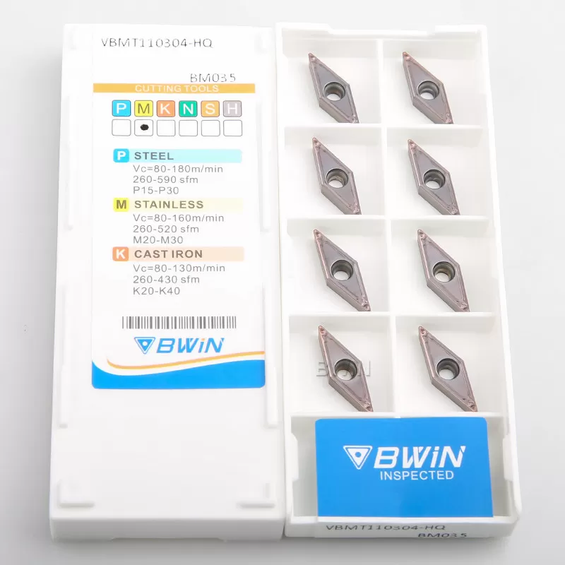 - Les plaquettes de tournage en carbure VBMT sont fabriquées à partir de matières premières de haute qualité, de technologie allemande et de rectification fine.La lame a une dureté élevée, une élimination douce des copeaux, une bonne ténacité, une résistance à l’usure et d’autres excellentes caractéristiques;La conception unique de l’angle avant 3D permet un contrôle et un flux de copeaux en douceur, réduisant efficacement la résistance à la coupe et garantissant une durée de vie plus longue de l’outil ;La conception à grand angle de coupe du bord de coupe supérieur réduit la résistance à la coupe, prolongeant ainsi la durée de vie de l’outil ;La surface supérieure est polie et offre d’excellentes performances de coupe, ce qui peut réduire l’accumulation de copeaux et assurer des copeaux lisses.